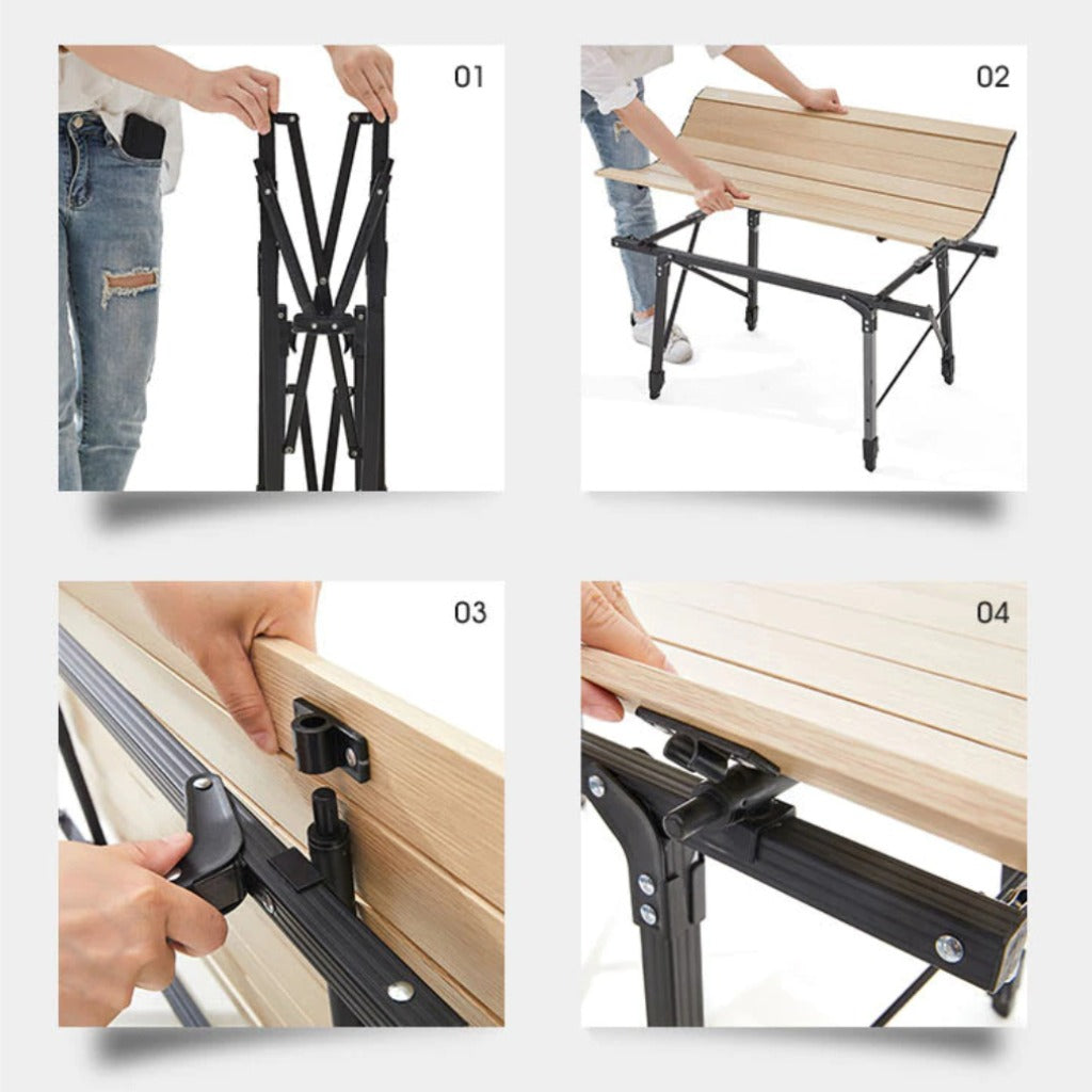 Meja Lipat Mobi Garden NX20665004 Telescopic Wood Folding Table