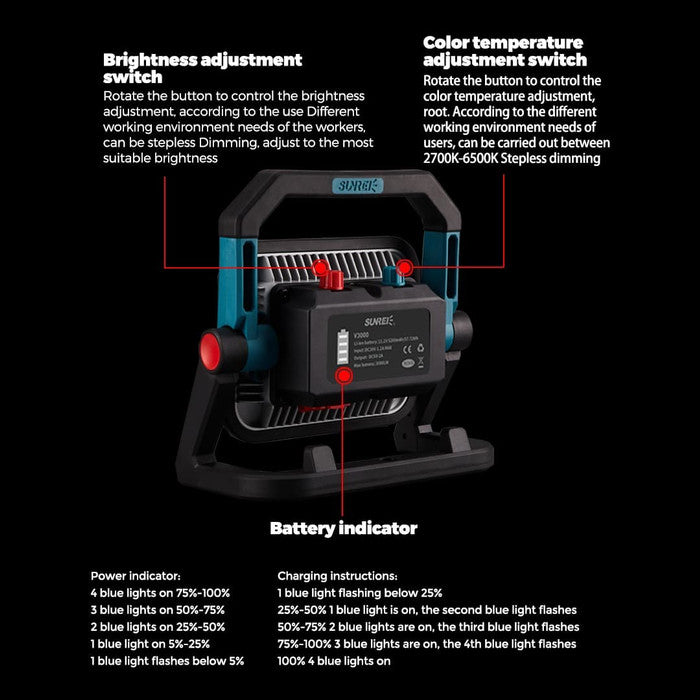 Lampu serbaguna Sunree dengan cahaya SUPER TERANG (3000lm) dengan metode dimming. Waterproof IP65, tahan terhadap debu semprotan air bertenaga kecil secara menyeluruh. Dengan Heat Emission Aluminum untuk dinyalakan dalam jangka waktu yang lama. Magnet kuat agar dapat ditempel di permukaan besi
