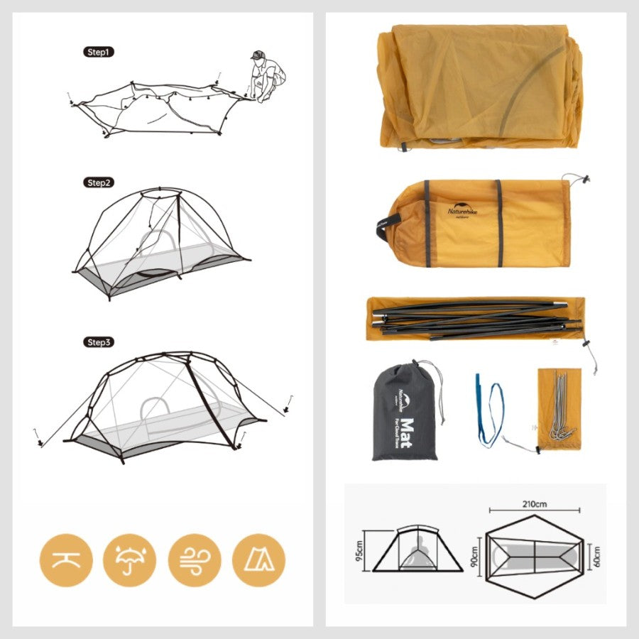Tenda Camping Ultralight Naturehike NH21ZP003 Cloud Trace Tent 1P 10D