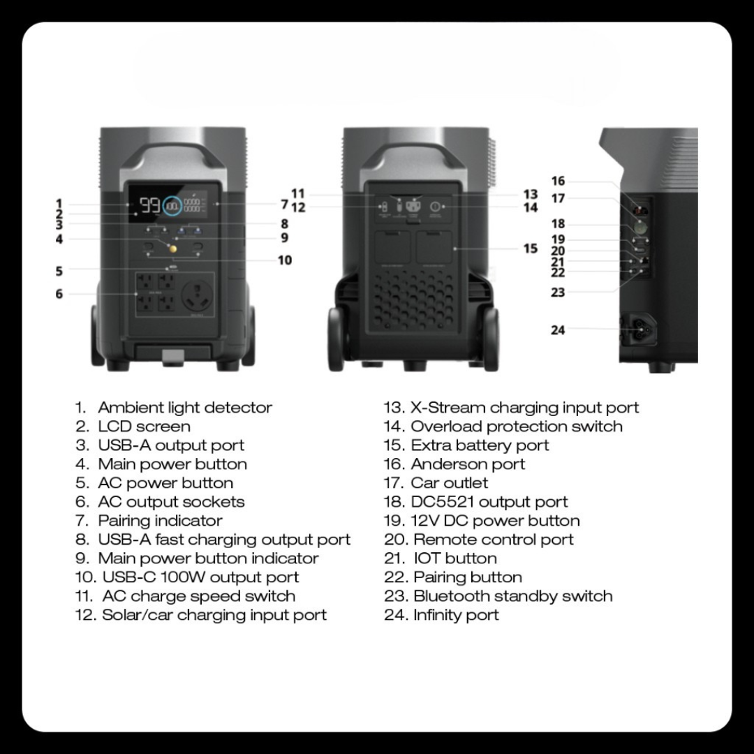 EcoFlow DELTA Pro 3600Wh 3600W-4500W Power Station Portable with Wheels